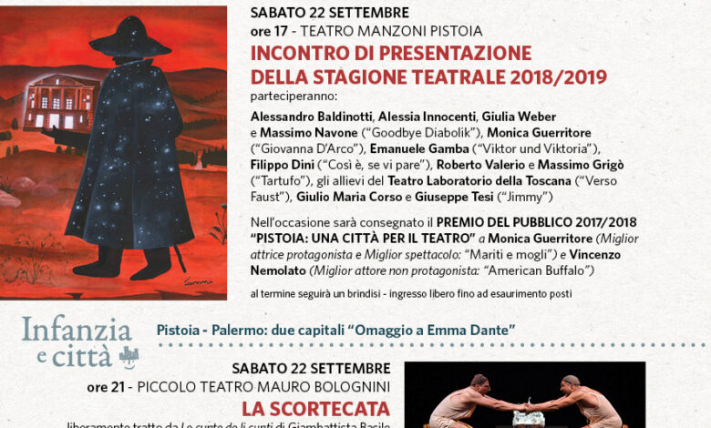 Torna sabato 22 settembre (ore 17) l’atteso appuntamento con l’incontro di presentazione della stagione del Manzoni di Pistoia.