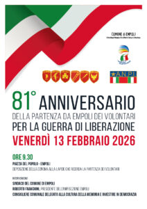 PROGRAMMA DELLA CERIMONIA – Alle 9.30 sarà deposta una corona d’alloro sotto la lapide che ricorda la loro partenza in piazza del Popolo. Lì interverranno il sindaco di Empoli, Roberto Franchini presidente dell’Anpi sezione Empoli e il consigliere comunale delegato alla Cultura della Memoria e Investire in Democrazia.
