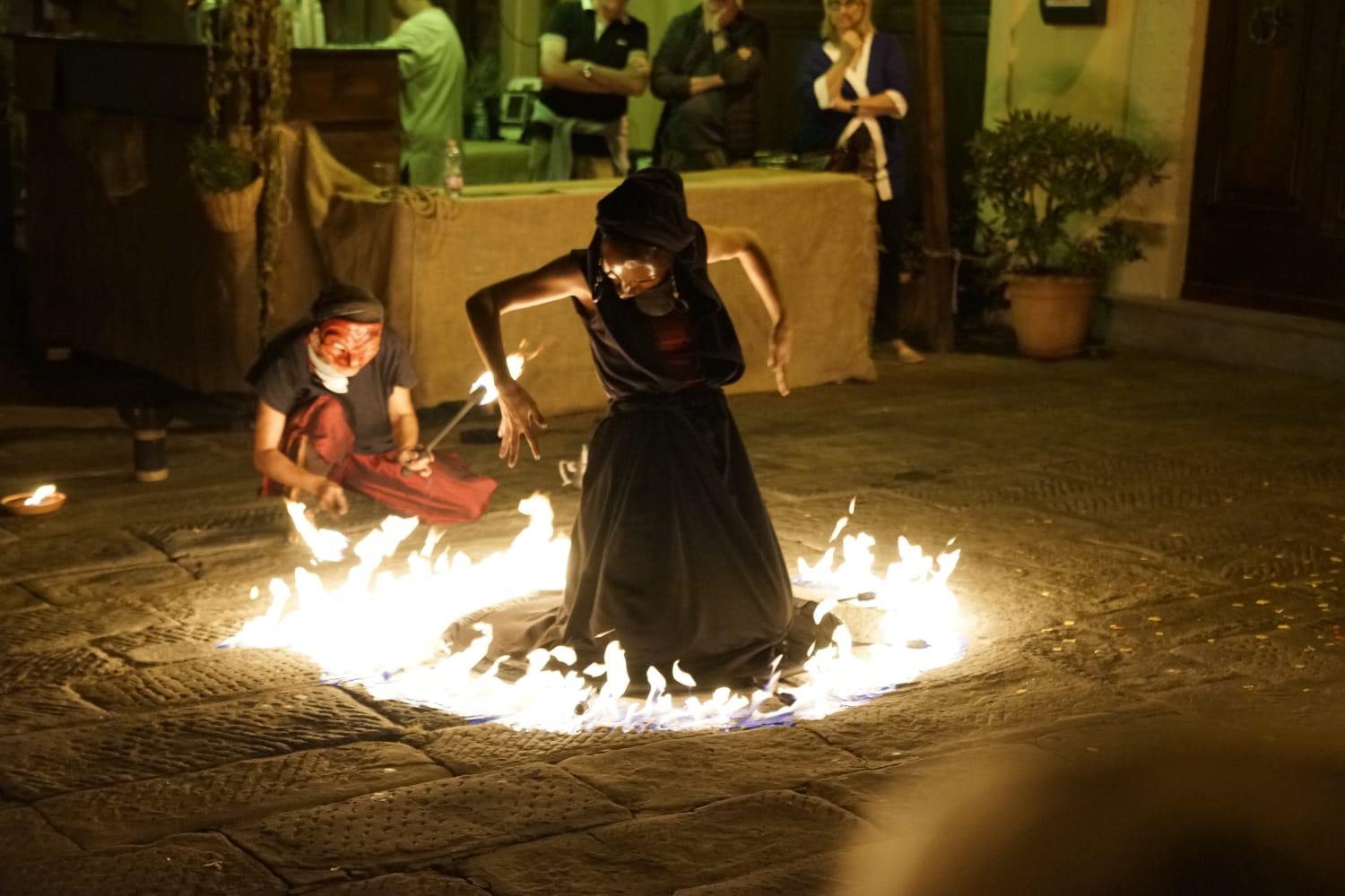 Rievocazioni di antichi mestieri, accampamenti militari, musici, figuranti e numerosi artisti di strada animeranno ogni angolo del centro tra Piazza Vittorio Veneto e Poggio Salamartano, attraverso un percorso segnalato da torce e stendardi. Spettacoli di forte impatto scenico realizzati da Compagnie di rinomata fama, cattureranno l’attenzione di grandi e piccoli.