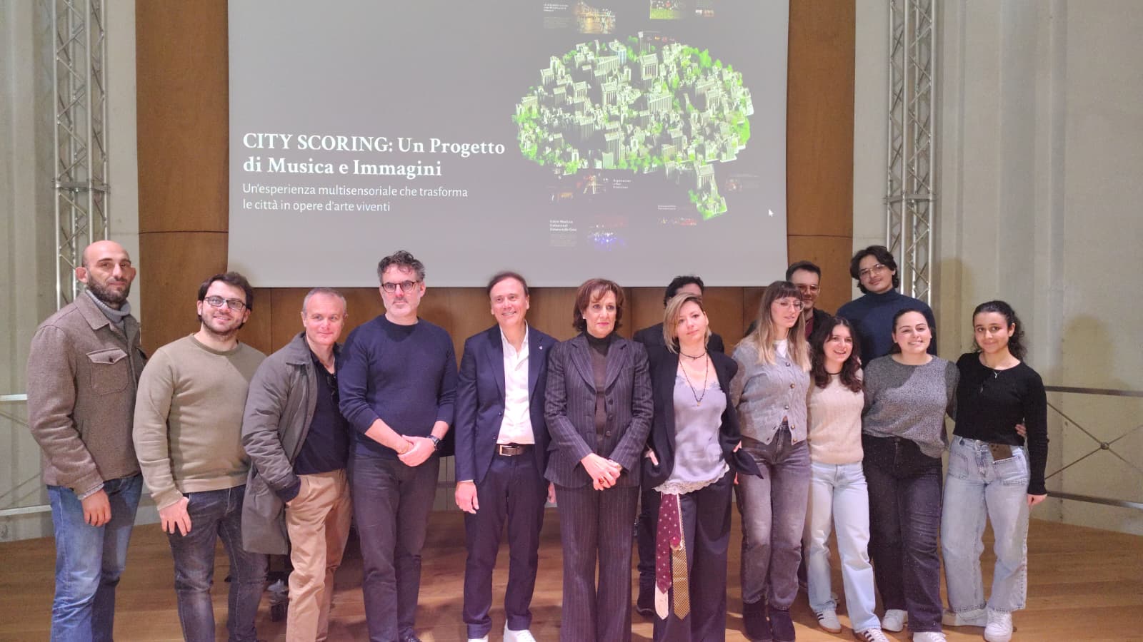 Lucca, 14 gennaio 2026 – Debutterà mercoledì 21 gennaio alle 21,15 presso il Teatro degli Animosi di Carrara il progetto City Scoring, un innovativo percorso artistico che trasforma le città in immagini sonore fondendo musica, architettura e paesaggio urbano. L’iniziativa è stata presentata questa mattina nell’auditorium del Conservatorio di Musica “Luigi Boccherini” di Lucca nel corso di una conferenza stampa alla quale hanno partecipato la presidente del Conservatorio Maria Talarico, il Vice Direttore dell’Istituto Fulvio Pietramala, il referente progettuale dell’Accademia di Belle Arti di Carrara Angelo Capasso e gli ex studenti del Master MAI – Musica Applicata alle Immagini Roberto Giacinto Pellegrino, Deborah Scotto, Emilio Tieri e Riccardo Vescovo, alcuni dei compositori che hanno composto le colonne sonore del progetto.