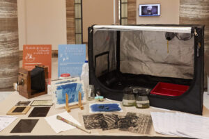 Come in un antico studio fotografico, nel laboratorio verranno prodotte fotografie al collodio umido, seguendo la tecnica affermatasi fra gli anni ’50 e ’80 dell’Ottocento. Saranno replicate tutte le fasi di lavorazione, dalla ripresa allo sviluppo, dal fissaggio della lastra alla finitura.