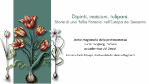 Partendo dall’esame di numerosi dipinti e incisioni, anche di celebri artisti (Rembrandt, Rubens, Ribera), sarà illustrato, da una prospettiva pluridisciplinare, il fenomeno della “tulipomania”, detta anche “febbre dei tulipani”, che si diffuse nell’Europa del Seicento, incidendo sulla vita sociale e culturale contemporanea. Il fenomeno, che ebbe origine nei Paesi Bassi (dove il tulipano, di recente provenienza orientale, aveva riscosso un particolare successo economico), fu causa di una “bolla” speculativa di massa che si diffuse variamente anche in altri Paesi, offrendo ad artisti, botanici, viaggiatori, letterati e pensatori ampia materia di riflessione e di ispirazione.