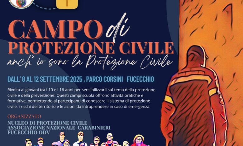Una settimana educativa per giovani cittadini consapevoli, tra formazione, ambiente e sicurezza. E’ quella promossa dall’Associazione Nazionale Carabinieri – Nucleo di Volontariato e Protezione Civile di Fucecchio OdV, in programma presso il Parco Corsini dall’8 al 12 settembre. “Anch’io sono la Protezione Civile” è il nome del campo scuola rivolto a ragazzi e ragazze dai 10 ai 16 anni, realizzato con il patrocinio della Presidenza del Consiglio dei Ministri – Dipartimento della Protezione Civile, del Comune di Fucecchio, del Raggruppamento Carabinieri Biodiversità di Lucca, del SECOV Nazionale dell’Associazione Nazionale Carabinieri e dell’Associazione Nazionale Carabinieri, a conferma del forte valore civico, educativo e formativo dell’evento.