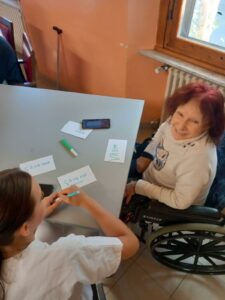 Tra momenti di formazione e attività con gli ospiti della struttura, le ragazze propongono giochi linguistici per insegnare qualche parola di francese, raccontano le tradizioni del loro paese, le ricette dei piatti tipici e condividono storie e sorrisi.