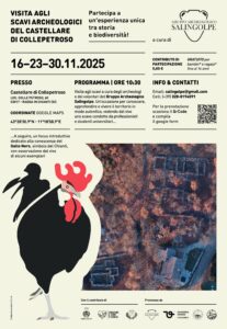 Nei giorni 16, 23 e 30 novembre 2025, alle ore 10:30, si terranno le visite guidate agli scavi archeologici del Castellare di Collepetroso, nel comune di Radda in Chianti, promosse dal Gruppo Archeologico Salingolpe con la collaborazione degli archeologi incaricati, dei volontari e degli studenti universitari impegnati nelle attività di ricerca sul campo.