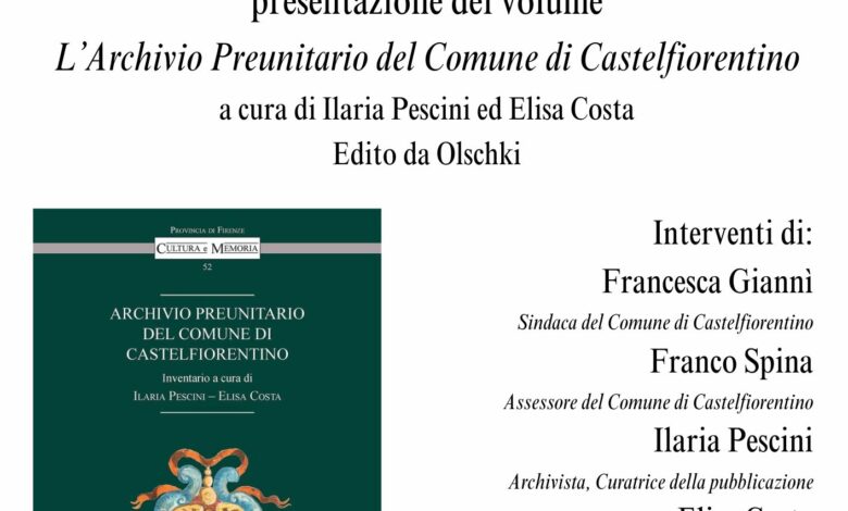 Una “bussola” per andare alla ricerca dei documenti relativi alla storia di Castelfiorentino e non solo, in un arco temporale che va dal XV secolo all’Unità d’Italia. E’ questo il biglietto da visita del volume “Archivio preunitario del Comune di Castelfiorentino”, inventario a cura di Ilaria Pescini ed Elisa Costa, che sarà presentato venerdì 7 febbraio 2025 (ore 17.30) al Ridotto del Teatro del Popolo.