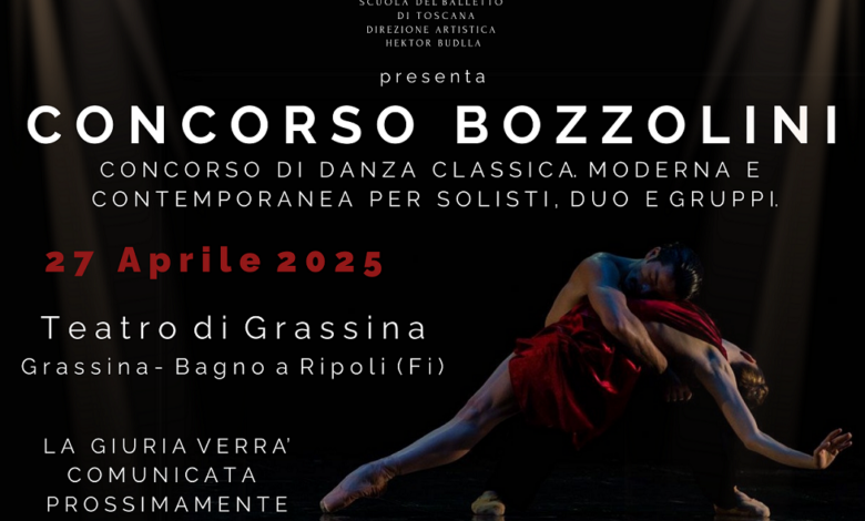 Firenze, 24 aprile 2025 – Oltre 100 danzatori e danzatrici da tutta Italia per la prima edizione del Concorso Bozzolini, in programma domenica 27 aprile alle ore 12.30 al Teatro di Grassina di Bagno a Ripoli. Il concorso, organizzato dall’Accademia Bozzolini – scuola del Balletto di Toscana – sotto la direzione artistica di Hektor Budlla, storica realtà formativa del territorio, rappresenta un’occasione importante per valorizzare il talento di giovani danzatori provenienti da tutta Italia. L’evento – pensato per solisti, duo e gruppi – ha già riscosso grande successo: le iscrizioni sono ufficialmente chiuse per raggiunto limite massimo, ma il pubblico potrà assistere alle esibizioni con ingresso a 12€.