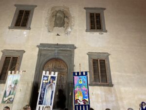 Benedizione dei cenci del Palio del Cerro. I drappi ufficialmente presentati nel corso di una solenne serata.