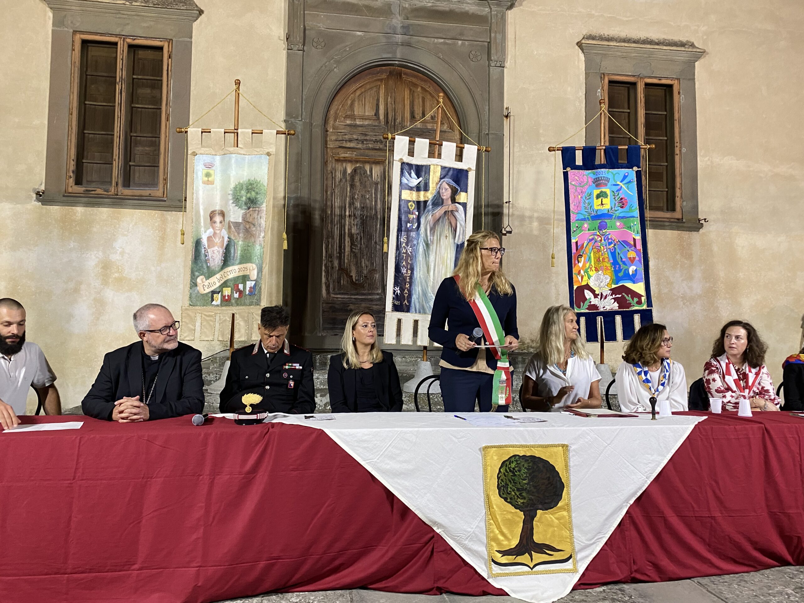 Cerreto Guidi, 5 settembre 2025– Tra i momenti più attesi nella settimana del 56°Palio del Cerro, la presentazione dei cenci, accompagnata dalla benedizione, ha avuto luogo nel Giardino antistante la Villa Medicea.