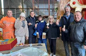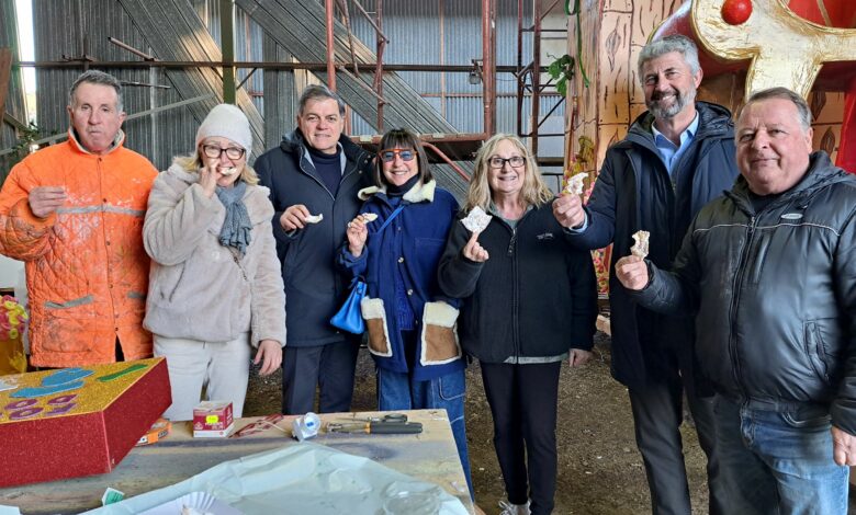 Un saluto con brindisi e… chiacchiere (intese come dolce tipico di Carnevale) insieme alle dieci contrade del Carnevale di Pietrasanta, nell’antivigilia dell’attesissimo esordio sul circuito cittadino: l’ha organizzato l’amministrazione comunale che, con la presidente delle giurie Franca Dini, nel pomeriggio di venerdì ha portato il canonico “in bocca al lupo” agli hangar dove si stanno apportando gli ultimi controlli e ritocchi alle costruzioni allegoriche.