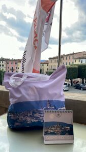 un’ampia shopper in cotone con una stampa fotografica che immortala Sinalunga in tutto il suo splendore. La foto intitolata “Luna piena su Sinalunga” è di Marco Lucherini ed è tra le vincitrici del Concorso fotografico bandito dall’Amministrazione Comunale “Obiettivo Sinalunga”;