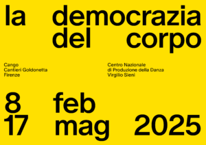 La prima parte de La democrazia del corpo 2025 accoglie a Cango Cantieri Goldonetta Firenze dal 4 ottobre al 20 febbraio 2025 i lavori e le ricerche performative di artisti nazionali e internazionali tra i più interessanti della scena contemporanea. Il progetto, con la direzione artistica di Virgilio Sieni e a cura del Centro Nazionale di Produzione della Danza CANGO/ FIRENZE, è realizzato con il sostegno del Ministero della Cultura, Fondazione CR Firenze, Comune di Firenze, Regione Toscana e Institut Français.