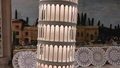 La Torre di Pisa all’uncinetto anteprima de La Via dei Presepi
