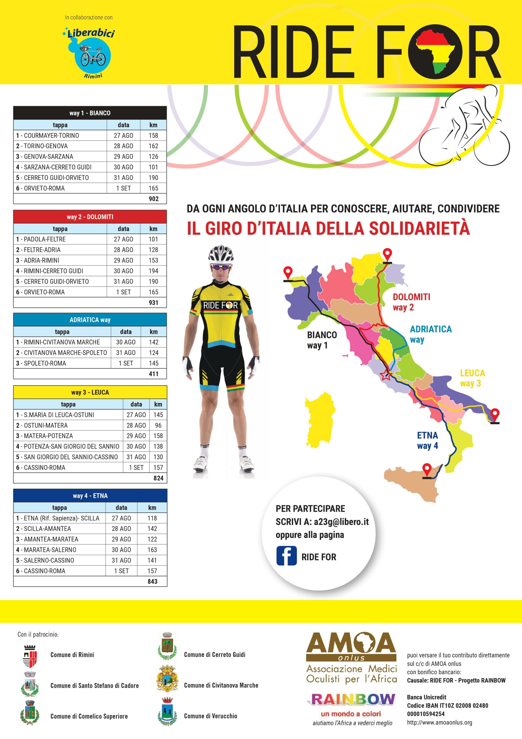 “Ride For”, il Giro D’Italia Della Solidarietà. Da ogni angolo d’Italia per conoscere, aiutare, condividere. La carovana a Cerreto Guidi mercoledì 30 agosto 2017.