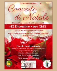 CONCERTO NATALE –Venerdì 12 dicembre alle ore 21,15 nella Parrocchia di San Leonardo, l’imperdibile concerto curato dalla Corale San Leonardo in occasione della Festa della Toscana. Soprano e maestra del coro è Maila Fulignati, all’organo Nicolas Briguglio, quartetto d’archi Quodlibet. Il direttore è Simone Faraoni.