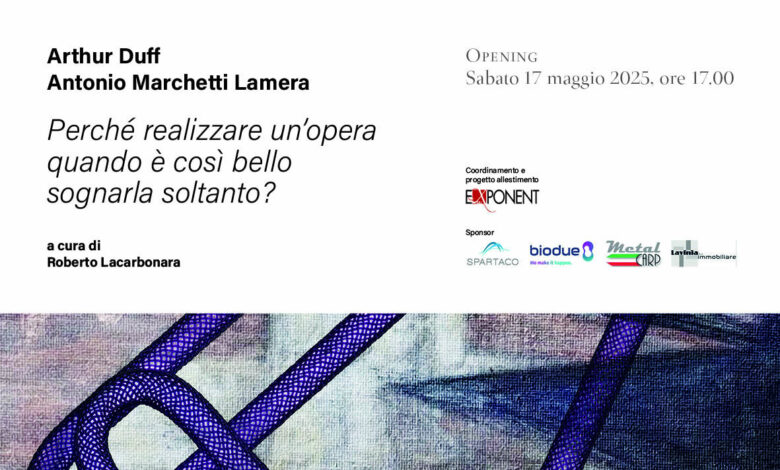Sabato 17 maggio 2025, alle ore 18.00, nelle sale a piano terra di Palazzo Pretorio a Certaldo, inaugura la mostra di Arthur Duff e Antonio Marchetti Lamera dal titolo Perché realizzare un’opera quando è così bello sognarla soltanto?