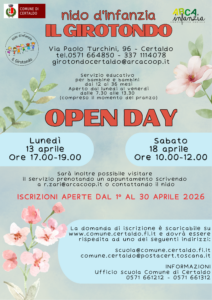 I servizi educativi per la prima infanzia del Comune di Certaldo aprono le porte alle famiglie in occasione degli Open Day 2026, un’importante opportunità per conoscere da vicino gli spazi, il progetto educativo e il personale dei nidi comunali.