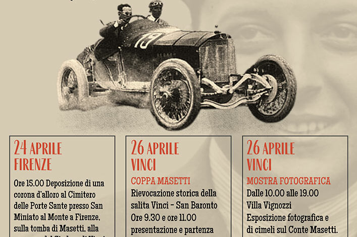 A cento anni dalla sua scomparsa, il Comune di Vinci onorerà la sua memoria con la Coppa Masetti, una serie di iniziative organizzate da Scuderia Tuscany Classics e Club per l’Unesco di Vinci.