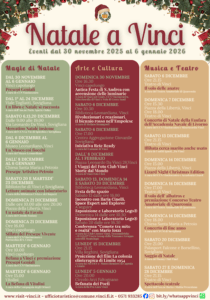 Per ricevere tutti gli aggiornamenti e per consultare il calendario dettagliato del Natale a Vinci, è sufficiente consultare il sito del Comune di Vinci o quello dell’ufficio turistico (visit-vinci.it), oppure iscriversi al canale WhatsApp del Comune (bit.ly/whatsappvinci).