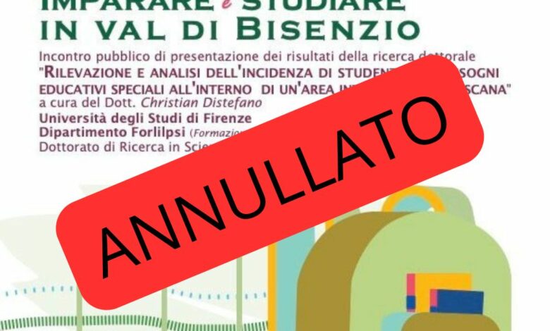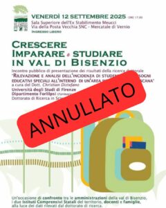 L’Unione dei Comuni della Val di Bisenzio è spiacente di comunicare che l’incontro “Crescere e studiare in Val di Bisenzio”, previsto per questa sera al Meucci a Mercatale di Vernio, non potrà svolgersi a causa di un incidente automobilistico che ha coinvolto il dottorando incaricato della presentazione della ricerca.