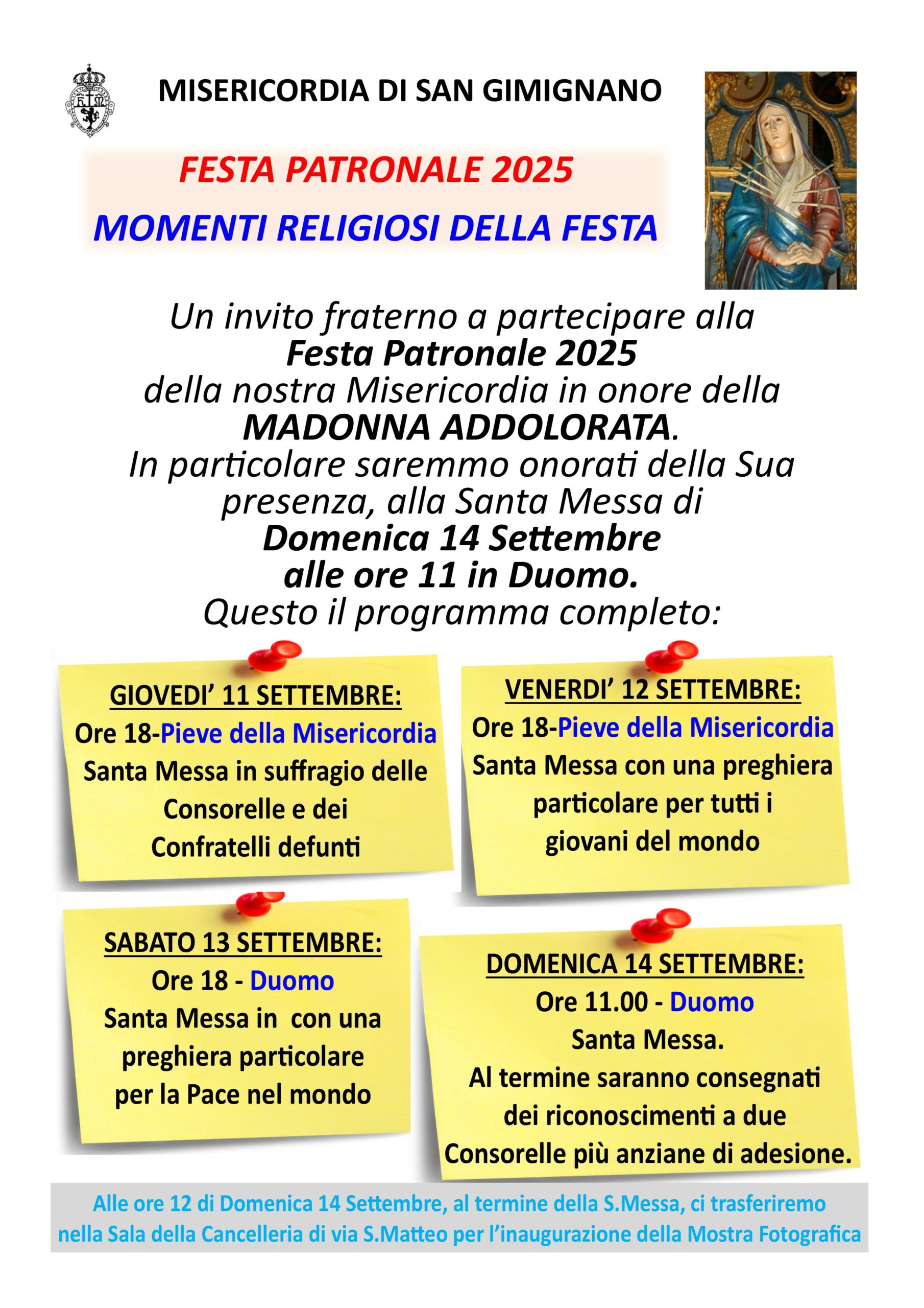 Comunicato Festa Patronale 2025 della Misericordia di San Gimignano