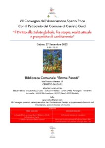 Cerreto Guidi ospiterà il VII Convegno dell’Associazione Spazio Etico. L’iniziativa si terrà Sabato 27 settembre nei locali della Biblioteca “Emma Perodi”.