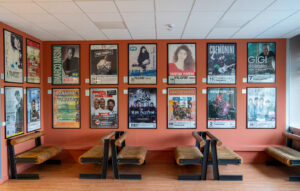 Accanto a ogni manifesto è stata apposta una targa che riepiloga tutte le date del gruppo o artista al Mandela Forum.
