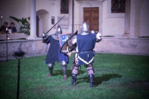 Altro momento di grande suggestione sarà la cena medievale, in programma sabato dalle 20 nel chiostro di Sant’Agostino: un vero banchetto nobiliare, con portate ispirate alle tradizioni culinarie del Trecento, dove non mancheranno pappardelle al cinghiale, zuppe rustiche, carni speziate, dolci e, a intrattenere i commensali, musici, giullari, sbandieratori, falconieri e duelli cavallereschi. Partecipazione con prenotazione obbligatoria entro il 3 ottobre, al costo di 40 euro a persona: per informazioni info@pietrasantamedievale.it, Guido (338 4728531) e Rita (328 9264419).