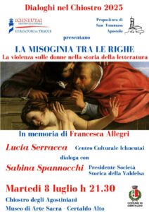 Lunedì 8 luglio alle ore 21:30, nel suggestivo scenario del Convento degli Agostiniani a Certaldo Alto, si conclude la rassegna culturale Dialoghi nel Chiostro con un appuntamento di grande intensità e attualità, dedicato al tema della violenza sulle donne nella storia della letteratura.
