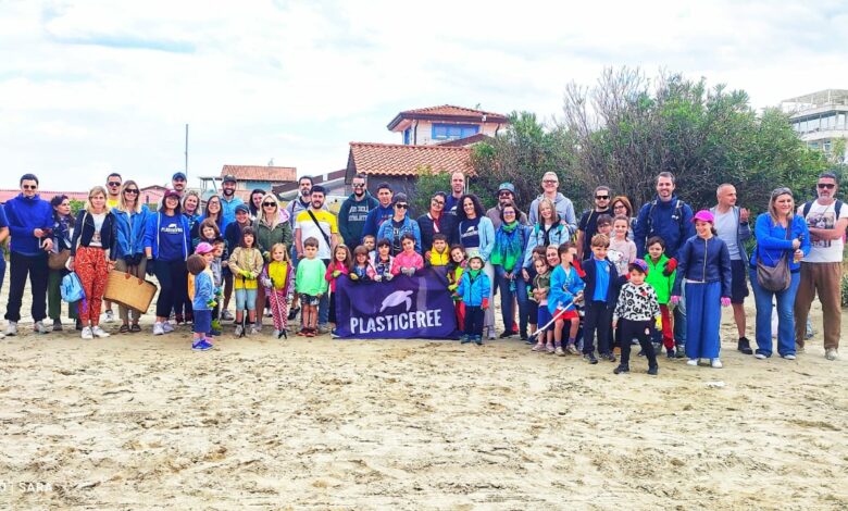 Oltre 60 persone, fra bambini, insegnanti e genitori, hanno partecipato questa mattina (17 maggio) al clean-up organizzato sulla spiaggia libera in località Motrone dall’associazione PlasticFree con le scuole d’infanzia Don Aldo Mei e Don Emilio Angeli di Lucca, atto conclusivo di un percorso di sensibilizzazione ambientale avviato nei due plessi dalle referenti lucchesi della onlus.