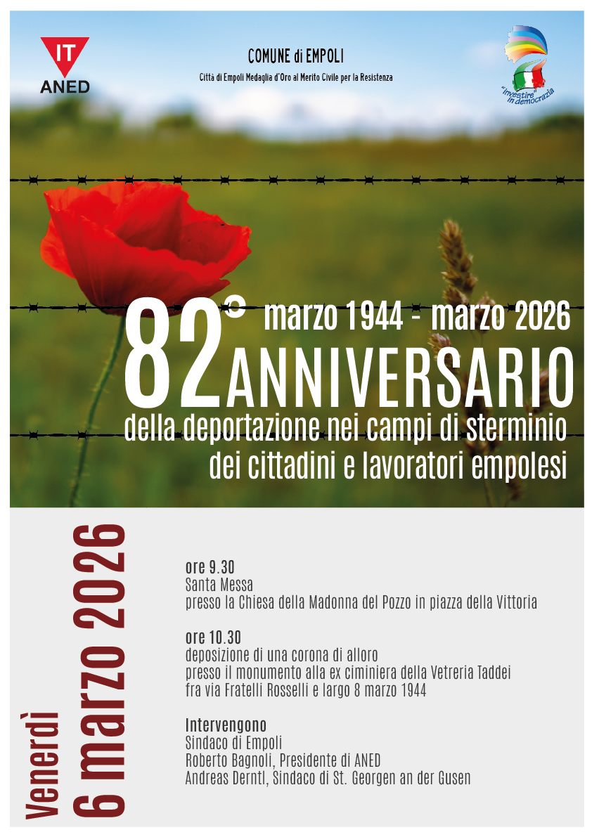 Lì interverranno il sindaco di Empoli, Roberto Bagnoli, presidente della sezione Empolese Valdelsa dell’Associazione Nazionale ex Deportati (Aned) e Andreas Derntl, sindaco di Sankt Georgen an der Gusen.