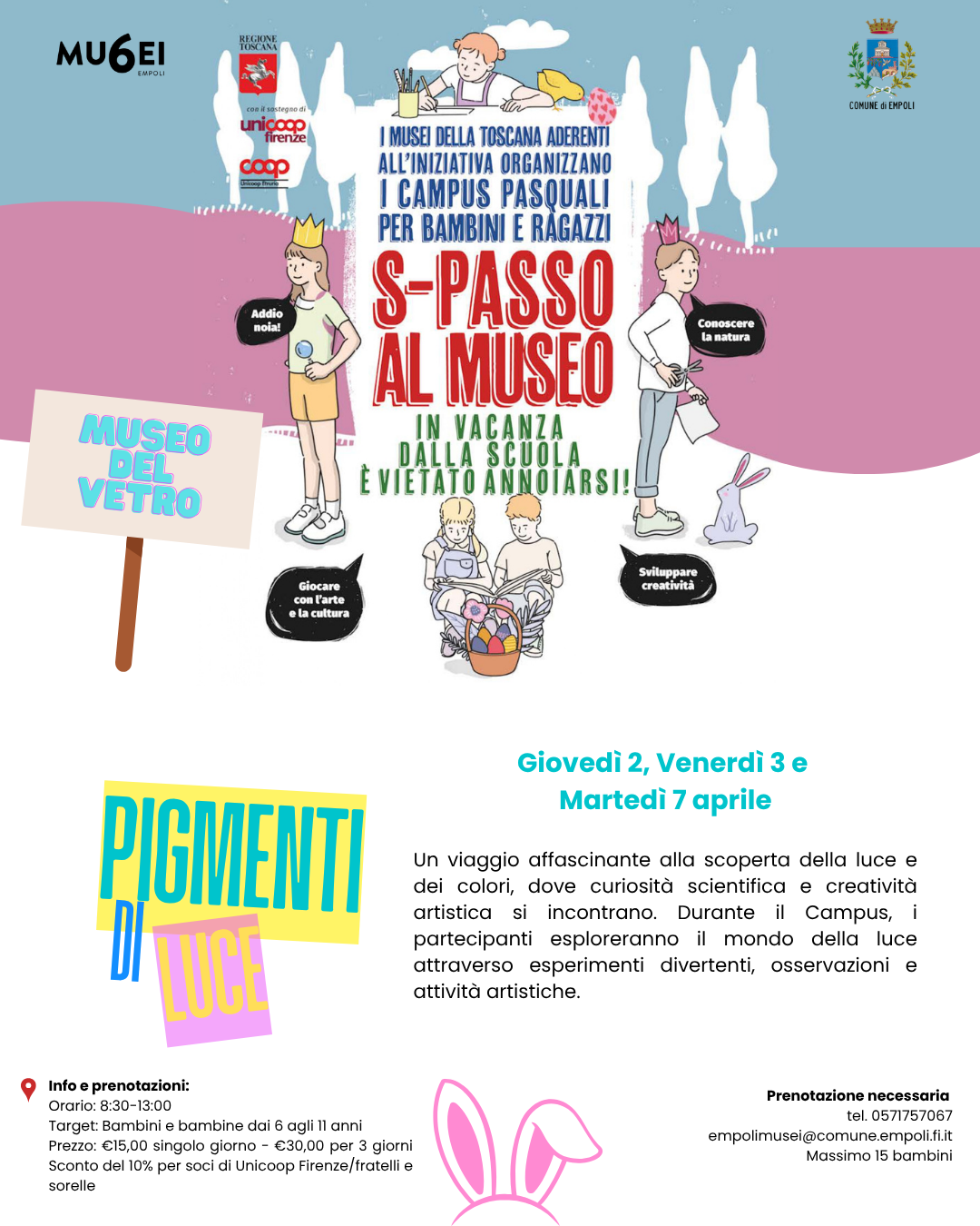 EMPOLI – I Musei della Toscana aderenti all’iniziativa organizzano i campus pasquali per bambine, bambini, ragazze e ragazzi dal titolo S-Passo al Museo: in vacanza dalla scuola è vietato annoiarsi.