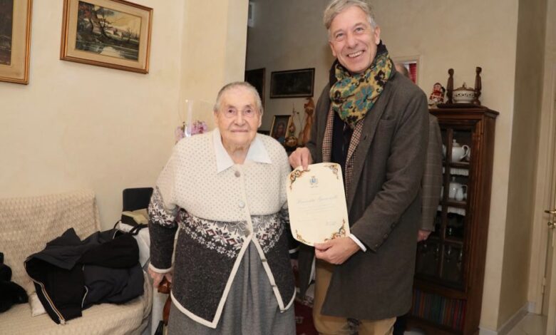 EMPOLI – Cento anni per la signora Brunetta Giacomelli. Classe 1924, ha festeggiato oggi pomeriggio, lunedì 15 gennaio 2024, il bel traguardo nella sua abitazione, nel calore della famiglia. A renderle omaggio in rappresentanza dell’amministrazione comunale, l’assessore Adolfo Bellucci che le ha consegnato un dono floreale e una pergamena ricordo.