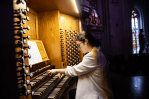 L’INTERPRETE – Ilaria Centorrino, messinese, classe 1998, a quindici anni ha iniziato lo studio del pianoforte, affiancato alla preparazione all’organo, presso il Conservatorio della sua città natale. Ha completato gli studi con il massimo dei voti, lode e menzione d’onore per la carriera internazionale presso il Conservatorio di Cosenza, svolgendo, successivamente, il tirocinio presso l’Università del Kansas sotto la guida di James Higdon e Olivier Latry. Vincitrice di numerosi concorsi internazionali, svolge un’intensa attività concertistica in Italia, Svizzera, Portogallo, Francia, Inghilterra, Germania, Svezia e Turchia. Pubblica regolarmente con numerose etichette discografiche, prossimamente è in uscita un suo disco dedicato alla musica d’organo per solo pedale. Docente di organo presso il Conservatorio di Cosenza, è una delle responsabili di “Orgelkids”, il progetto che favorisce la conoscenza del mondo dell’organo fra i più piccoli.