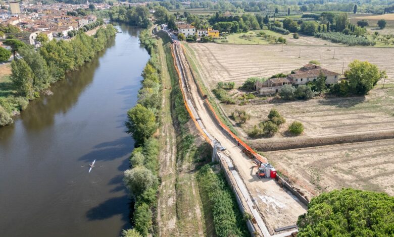 I LAVORI – Il tratto in cui saranno eseguiti i lavori non presenta abitazioni. È stato interdetto il transito veicolare e pedonale perché all’avvio dei lavori è stato rimosso il guard-rail, unica protezione tra strada e argine prima della fine del muro, e la sicurezza verrebbe meno. Ai residenti è stato sempre garantito l’accesso con le auto nei pressi delle loro abitazioni. Il tratto di strada interessato sarà allargato di un metro dopo i lavori.