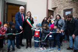 “Voglio prima di tutto dire grazie – continua la sindaca Barnini – Non si raggiungono risultati importanti da soli. Grazie al presidente della Regione Toscana Eugenio Giani, questa mattina qui: senza i fondi strutturali, che ci è stata data la possibilità di sfruttare, tutto questo non sarebbe successo: i progetti di rigenerazione urbana, che negli ultimi anni hanno contribuito a cambiare volto alla città, sono uno degli aspetti che risulterà caratterizzante per questi anni di governo locale. Se non avessimo scelto di provare questa sfida, ci saremo trovati impreparati anche alla sfida successiva, quella del PNRR. Grazie all’ex vicesindaco Franco Mori, nel 2015 all’avvio di questa grande impresa c’era lui: senza la sua preziosa esperienza, non saremo stati in grado di immaginare questa cosa. Poi ci sono tanti altri protagonisti come le dirigenti comunali Roberta Scardigli e Sandra Bertini, il direttore della biblioteca Carlo Ghilli, tutta la famiglia della biblioteca, tutta le rete dei servizi educativi all’infanzia. Se non fossimo questa città non avremo pensato a questo progetto, un intero immobile destinato a un’unica funzione: biblioteca per bambini e ragazzi. E voglio sottolineare come anche la storia conti tanto per capire dove si può arrivare: questo immobile era l’ex convitto infermieri, collocato in aderenza con la terza cerchia muraria con la Torre dei Righi. Qui si apriva Porta senese, detta anche giudea o dei cappuccini. E c’è l’ex ospedale. Era un unico segno urbano realizzato per volere di Cosimo I e la volontà medicea è testimoniata da una lettera del Duca all’architetto incaricato di costruire la cinta muraria. Poi la torre perse la sua funzione difensiva per poi essere dismessa. Oggi uno strumento di difesa, dopo tanti secoli, diviene luogo di apertura, crescita, emozioni, l’esatto opposto. Qui c’è il senso della rigenerazione urbana. E in più questo fabbricato è esattamente punto di partenza dell’asse via Ridolfi – Palazzo delle Esposizioni dove tra poco partirà il cantiere del teatro civico, un parco culturale. Ecco che si crea un corridoio che tiene assieme le funzioni pregiate della città, pensate per far star bene le persone insieme. Questa la più grande sfida di ogni città nei prossimi anni, far sì che stiamo insieme senza conflitto. E Palazzo Leggenda, al quale siamo arrivati dopo aver dato vita a Leggenda festival dell’ascolto e della lettura per bambini, ragazzi e famiglie, pensa prima di tutto ai giovanissimi, come il nostro obiettivo di essere accreditati dall’Unicef come Città amica dei bambini e degli adolescenti. Una città in cui si pensa prima ai più piccoli è una città dove tutti stanno bene. E questo è solo l’inizio, penso al completamento dell’ex ospedale, con nuove funzioni legate a formazione e orientamento al lavoro, e poi alla realizzazione del teatro e ancora alla nuova fase di programmazione fondi europei, con il recupero fra l’altro di Palazzo Ghibellino e Porta Pisana”.