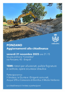 EMPOLI. Ponzano, assemblea pubblica per aggiornare la cittadinanza sulle questioni aperte dopo l’alluvione