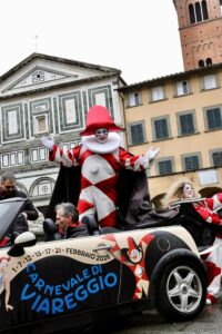 Nonostante la pioggia ad aprire la festa i personaggi del Carnevale di Viareggio Burlamacco e la tribù dei Burlamacchi hanno attraversato vie e piazze del centro cittadino cantando e ballando. Ma prima, tutti a Palazzo Leggenda!