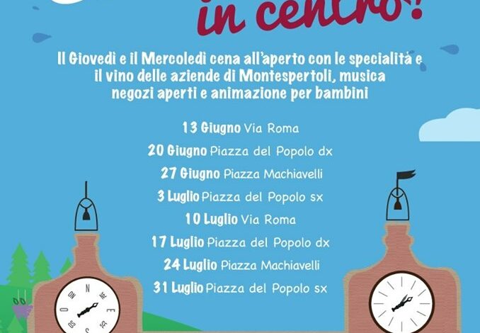 Mercoledì 17 luglio 2019, continuano le serate a cura dell’Associazione Commercianti e Artigiani di Montespertoli, in piazza Roma, dalle ore 20:00, con la “Grigliata di Paolo”, cena all’aperto, con Fiorentina, Rosticciane, salsicce e fagioli e vino delle Aziende di Montespertoli. In collaborazione con l’Amministrazione Comunale di Montespertoli.