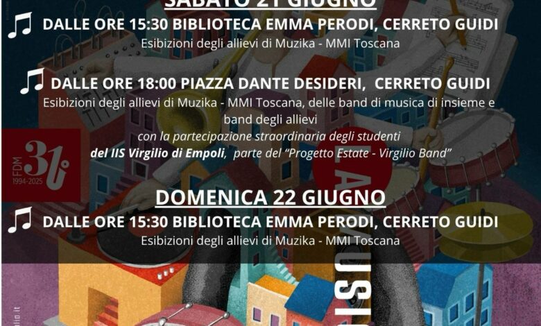 Cerreto Guidi, 18 giugno 2025– La Festa della Musica, nata in Francia nel 1982, ha visto i suoi primi sviluppi nel resto dell’Europa nel 1985 in occasione dell’anno europeo della Musica. Da allora si è sviluppata sempre di più e anche quest’anno torna puntuale in molte città italiane.