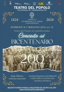 Questo il nutrito programma del “Concerto del Bicentenario”, che si svolgerà al Teatro del Popolo di Castelfiorentino domenica 5 maggio, alle ore 21.00. Una serata chere nasce come retrospettiva musicale, ma che intende porre in evidenza la rilevanca storico-culturale del fenomeno bandistico dalle origini ai giorni nostri, dove si sono formati alcuni dei maggiori compositori italiani degli strumenti a fiato