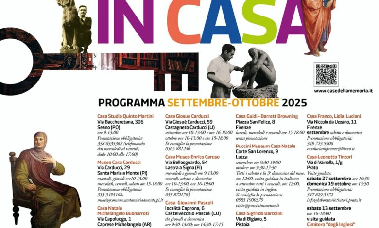 Firenze, 5 settembre 2025 – Sono tanti gli appuntamenti promossi dall’Associazione Nazionale Case della Memoria, realtà che fa base in Toscana ma mette in rete 109 case museo in 15 regioni italiane, per il cartellone “Settembre in città. Le Associazioni per la cultura”, manifestazione promossa dal Centro Associazioni Culturali Fiorentine che con i suoi 41 eventi, animerà la città dal 4 al 30 settembre (con un’anteprima il 3). A seguire, l’immancabile appuntamento con il Festival delle Associazioni Culturali Fiorentine che torna con la sua XI edizione, e 21 iniziative, dal 3 al 17 ottobre. “Settembre in città” rientra nell’Estate Fiorentina promossa dal Comune di Firenze e si avvale della collaborazione del Cesvot e del sostegno della Fondazione CR Firenze, oltre alla sponsorizzazione tecnica di Unicoop Firenze.