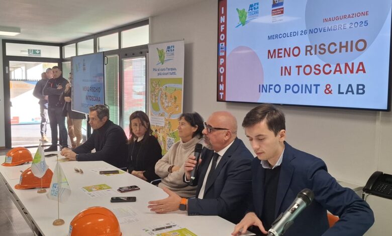 Firenze, 26 novembre 2025 – Un nuovo luogo di riferimento sul territorio per informarsi, sperimentare e comprendere come nasce il rischio idraulico e come è possibile ridurlo ma anche promuovere una maggiore consapevolezza sui temi della prevenzione e dell’adattamento climatico. È stato inaugurato questa mattina nella sede di Anbi Toscana a Firenze (viale della Toscana 21) il nuovo “Meno rischio in Toscana – Info Point & Lab”, spazio dedicato alla sensibilizzazione e all’informazione sui temi del rischio idraulico e idrogeologico.