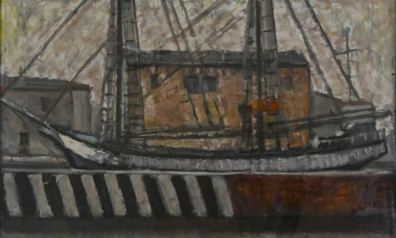 Infatti sono in mostra 66 opere (47 dipinti e 19 opere di grafica) – raffiguranti paesaggi, darsene, marine, cantieri, ritratti, nature morte e ben 11 autoritratti – realizzate tra gli anni ’30 e gli anni ’80 del Novecento per raccontare il cammino artistico di Alfredo Catarsini. Da segnalare che il percorso espositivo – allestito al piano terra dell’attuale Municipio di Montecatini Terme e che nel 1918 fu impreziosito dalle tempere murali dall’artista fiorentino Galileo Chini – comprende anche due opere praticamente inedite provenienti dalla collezione privata della Famiglia Pazzaglia di Montecatini Terme – un Veliero all’ormeggio del 1958 e un curioso, piccolo Autoritratto con gli occhiali da sole del periodo 1955-1960 – che aiutano a comprendere meglio l’arte di Catarsini.