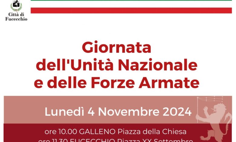 A seguire, alle ore 11.30 a Fucecchio, in Piazza XX Settembre, avrà luogo la cerimonia ufficiale con la partecipazione delle autorità civili, militari e religiose, delle associazioni combattentistiche e d’arma e delle scuole del territorio. La Giornata dell’Unità Nazionale e delle Forze Armate rappresenta non solo un tributo al passato, ma anche un invito a rinnovare il senso di appartenenza, di solidarietà e di responsabilità verso la comunità e le istituzioni democratiche. Un’occasione per riaffermare i valori di pace, libertà e unità che costituiscono le fondamenta della Repubblica italiana.