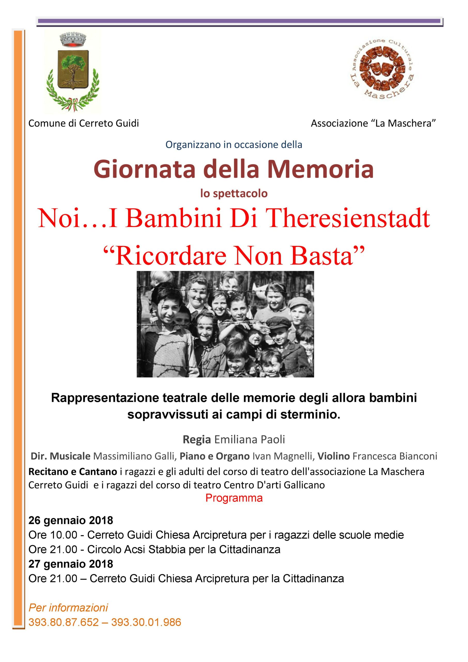 Lo spettacolo promosso dal Comune di Cerreto Guidi, è intitolato “Noi… I Bambini di Theresienstadt –Ricordare non basta”.