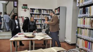 L’incontro si è concluso con un momento musicale che ha visto protagonisti Lisa Pastine, della classe di chitarra del professor Giampaolo Bandini, e Andreas Garivalis, della classe di canto della professoressa Maria Billeri, impegnati nell’esecuzione di Balada para un loco di Astor Piazzolla, compositore legato alle origini lucchesi dei suoi nonni materni. Il Ministro Bernini, al termine della visita, ha voluto soffermarsi nella biblioteca storica del Conservatorio, con una breve illustrazione dei materiali di pregio che vi sono custoditi a cura del Direttore di biblioteca Paolo Giorgi.