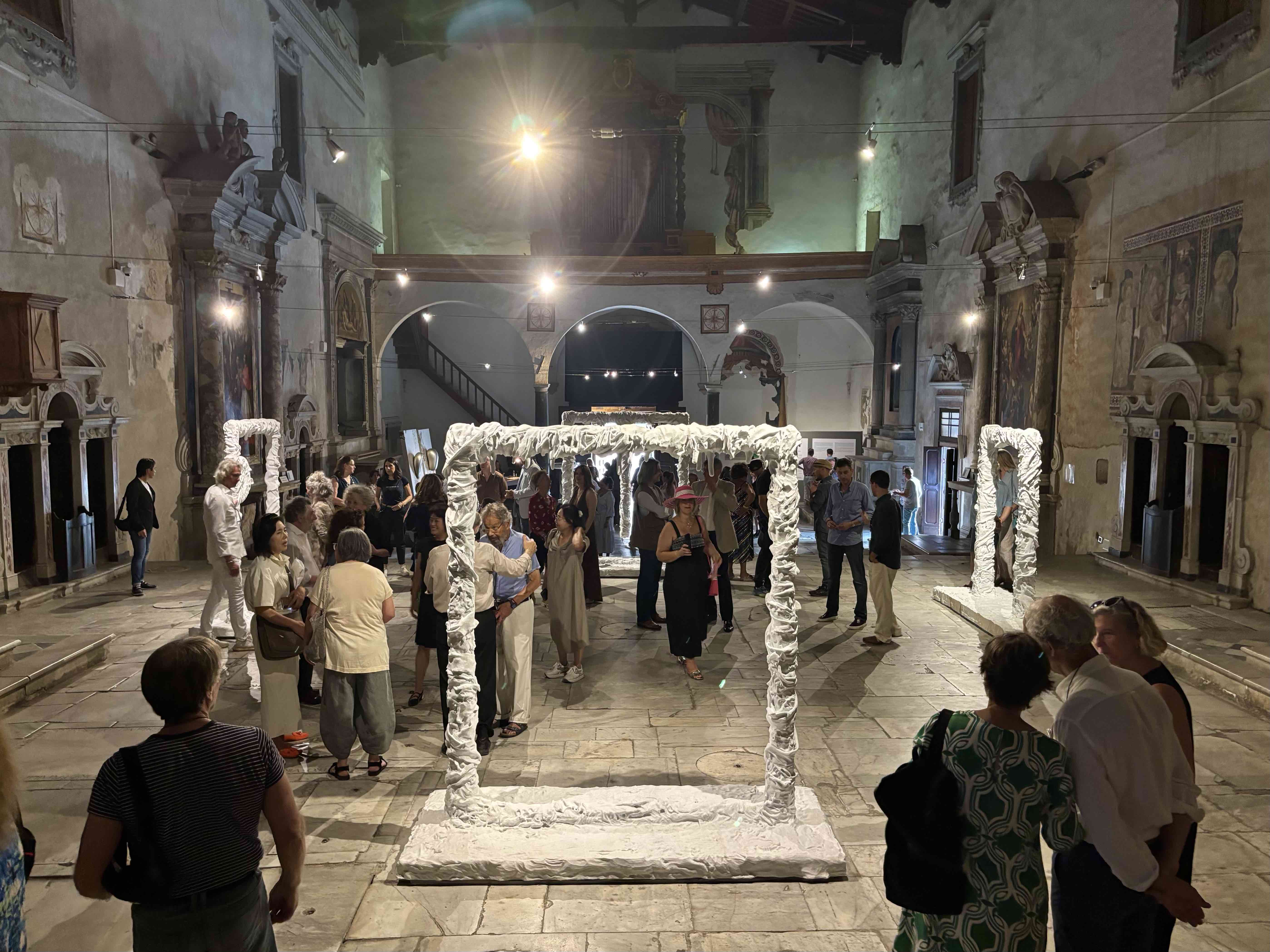 (Nella foto l’allestimento della mostra “Oltre la forma” all’interno della Chiesa di Sant’Agostino)