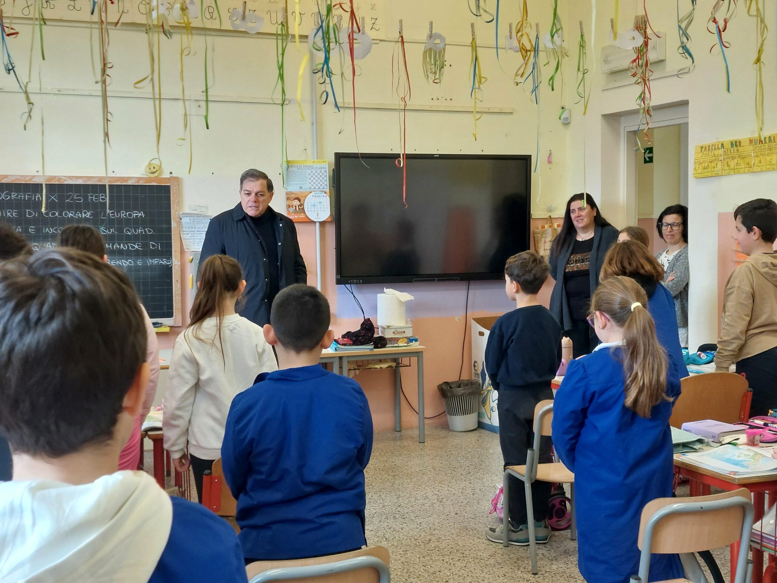 Una visita… a grande richiesta, quella fatta dal sindaco di Pietrasanta Alberto Stefano Giovannetti, questa mattina (18 febbraio), alla scuola primaria “Mutti” di Strettoia. Gli alunni della classe quarta, martedì, avevano partecipato al primo incontro de “Il Comune diventa Elementare” ma erano rimasti un po’ dispiaciuti, come avevano confessato alle insegnanti, di non aver potuto incontrare nell’occasione anche il primo cittadino: “Ho voluto rimediare subito – ha raccontato Giovannetti – e anzi, ringrazio le insegnanti di avermi segnalato questa richiesta. Ho trovato bambini e bambine curiosi, attenti, mi hanno fatto tante domande ed è stato, come sempre, molto piacevole chiacchierare con loro. L’iniziativa promossa dalla Presidenza del consiglio comunale è un’ottima occasione per iniziare a far conoscere ai più piccoli l’ente municipale, i suoi organi e le funzioni che vengono svolte: mi congratulo ancora con la presidente Brizzolari e l’ufficio di segreteria e ringrazio i consiglieri che, via via, partecipano agli incontri con le nostre scuole”.