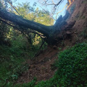Il sopralluogo effettuato dall’ufficio tecnico del Consorzio ha confermato la presenza di circa quindici piante di piccole dimensioni (tra cui castagni, frassini e allori) cresciute in alveo e lungo la sponda sinistra del fosso, oltre a una quercia di dimensioni eccezionali stramazzata all’interno del corso d’acqua. La particolare conformazione del sito, caratterizzato da sponde molto incassate e versanti ripidi con dislivelli fino a 15 metri, ha reso l’intervento particolarmente complesso dal punto di vista operativo e logistico.